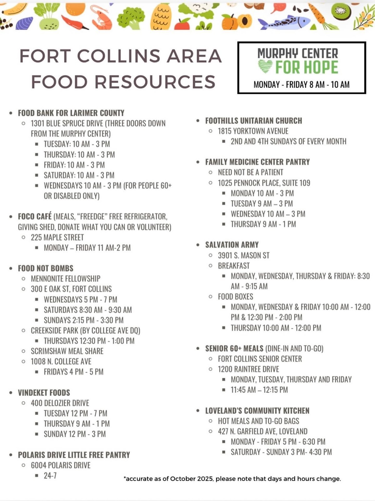 - Friendly Nick’s Butcher (Fort Collins) is offering free meat to anyone who has lost SNAP benefits or is furloughed/working without pay during the shutdown. The offer includes one pound each of ground beef, pork shoulder, chicken breast, and either drumsticks or wings, plus a half-dozen eggs. Families can receive the free food by showing an EBT card or federal ID.